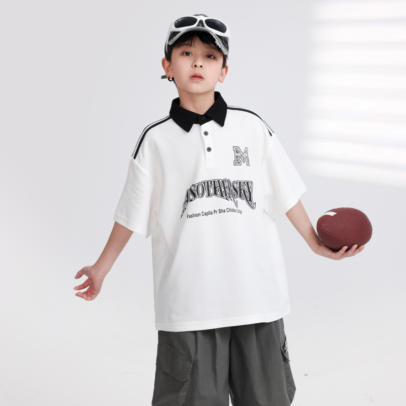 男童夏装运动polo衫短袖白t恤2025新款青少年儿童夏季冰丝薄上衣