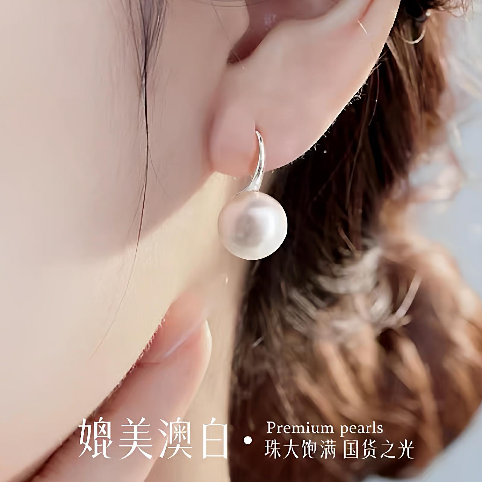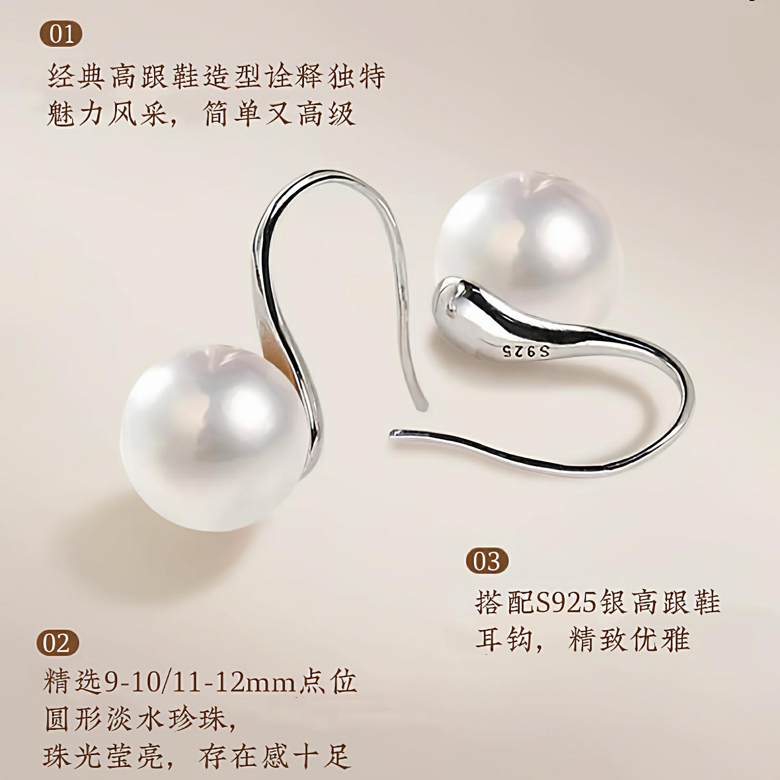 梵宝雅阁诸暨淡水珍珠耳钩女正圆强光高跟鞋S925银气质防过敏耳饰
