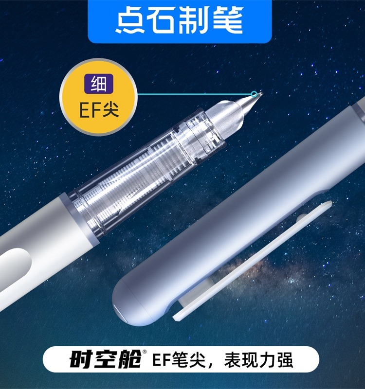 点石时空舱二代EF尖DS-7155不溅墨细尖钢笔换墨囊中小学生专用练字书法笔0.35笔尖太空舱文具礼盒儿童节礼物