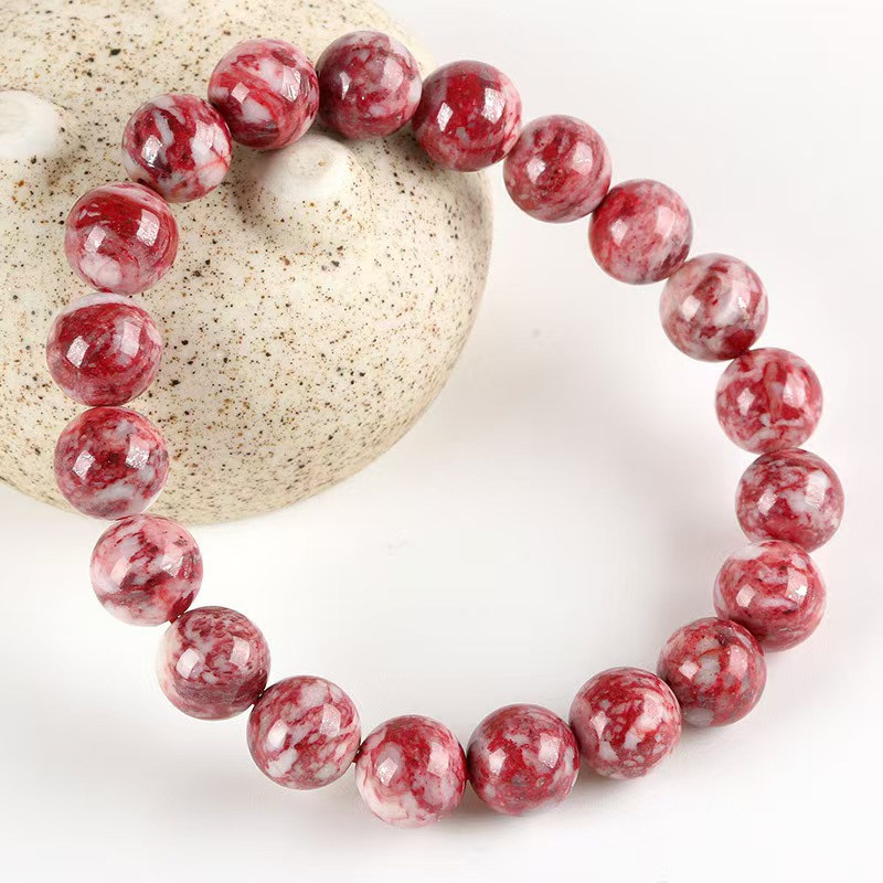 鸡血朱砂石手串整颗打磨手链男女湘西辰砂礼物