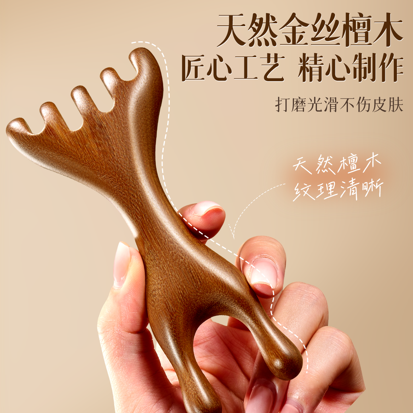 五爪鹿角按摩梳子按摩头皮经络小青蛙檀木疏通刮鼻梁头疗刮痧神器