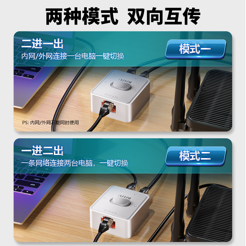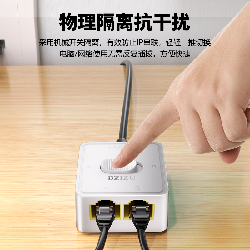 【无衰减】白蜘蛛二进一出网络2.5G/5G切换器内外千兆网一键无源免电源隔离网线切换器适应安全办公保用五年