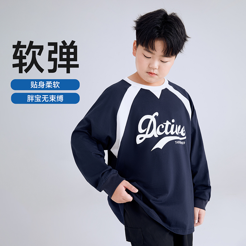 小猪托尼胖男童T恤长袖春t青少年百搭上衣胖童装男童加肥加大