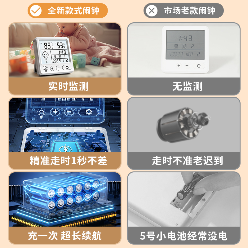 电子温湿度计室内家用婴儿时钟迷你精准闹钟温度表客厅显示房间