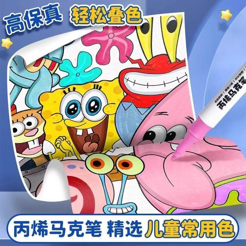 60色48色大容量丙烯马克笔盒装儿童专用可叠色不透纸幼儿园学生版软头丙烯笔可水洗水性水彩笔小孩画画笔