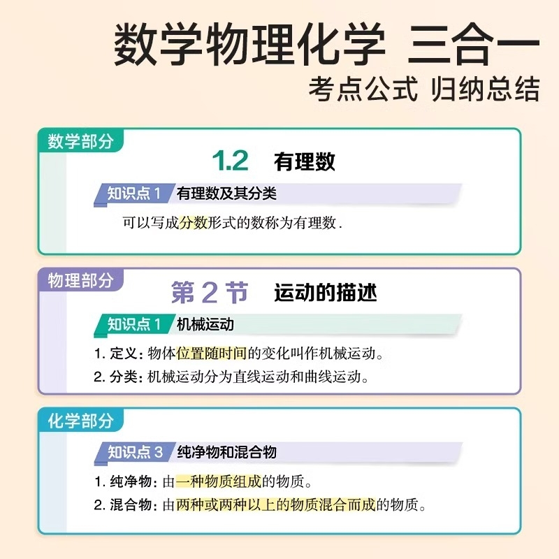 时光学初中数理化一本全考点及公式大全中学生七八九年级初一初二初三初中生知识点总结定理卡片手卡手册自学丛书辅导资料A一本通