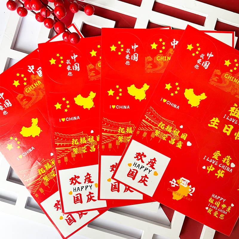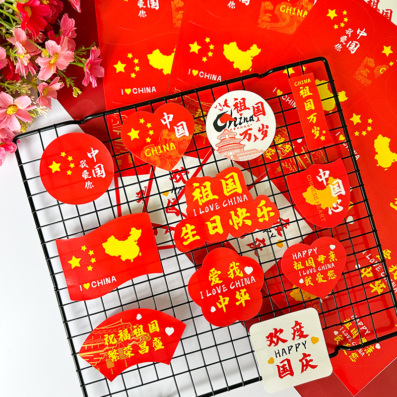 创意十一喜迎国庆节快乐主题热爱祖国装饰不干胶贴纸学生用儿童脸贴手臂贴蛋糕烘焙奶茶杯子礼物素材祝福贴画