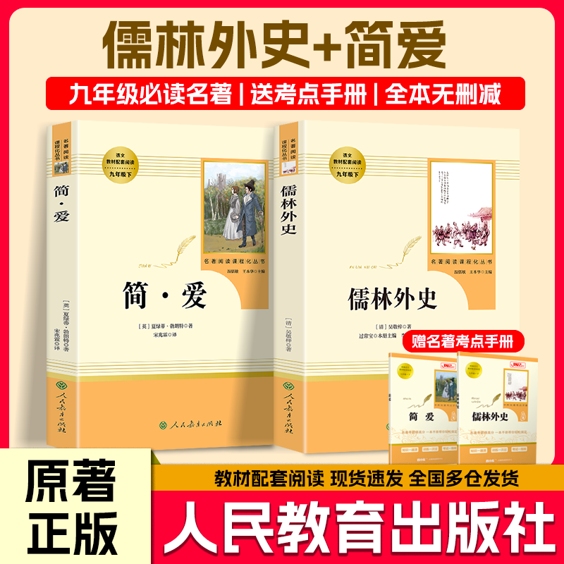 正版儒林外史和简爱九年级下册必读名著全套人教版人民教育出版社书籍正版原著完整版送考点手册初三阅读书我是猫契诃夫格列佛游记