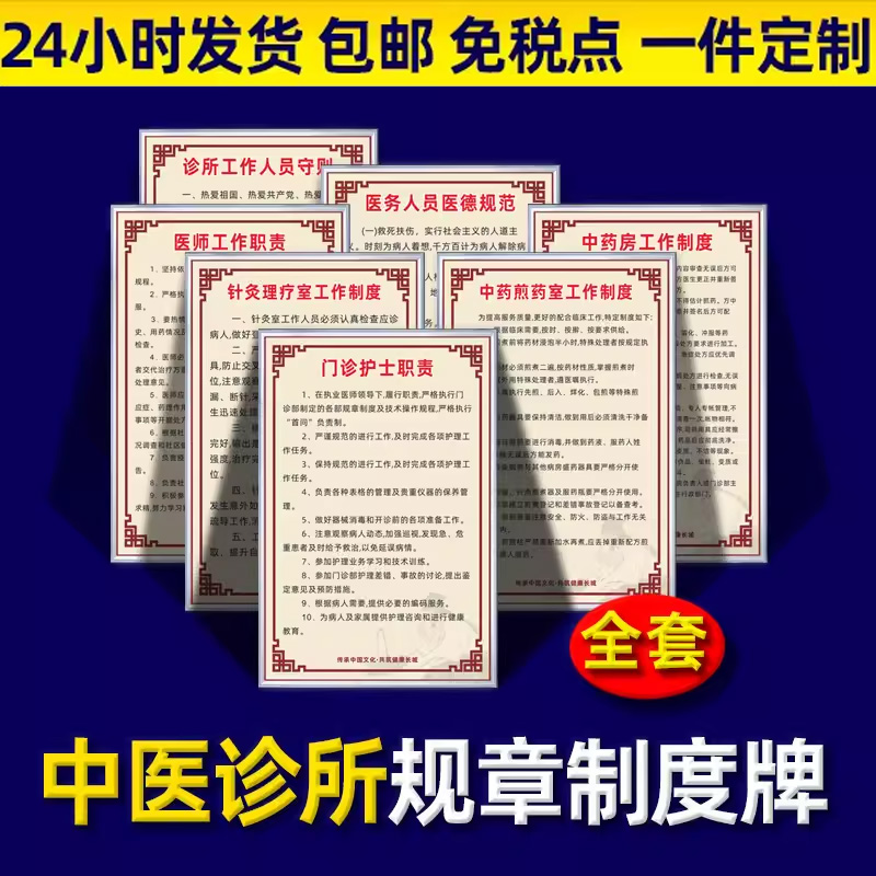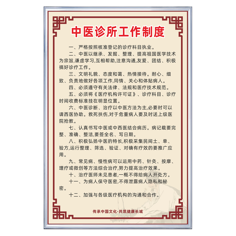 中医诊所规章制度牌医师职责传染病报告诊疗室中药处方配药工作规定医疗事故预防及管理制度上墙牌KT板可定制