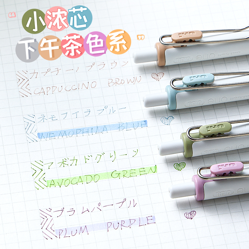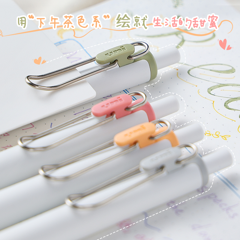 日本UNI三菱小浓芯下午茶限定中性笔用按动彩色做笔记手帐0.38子弹头进口标注划线课堂学生白杆笔
