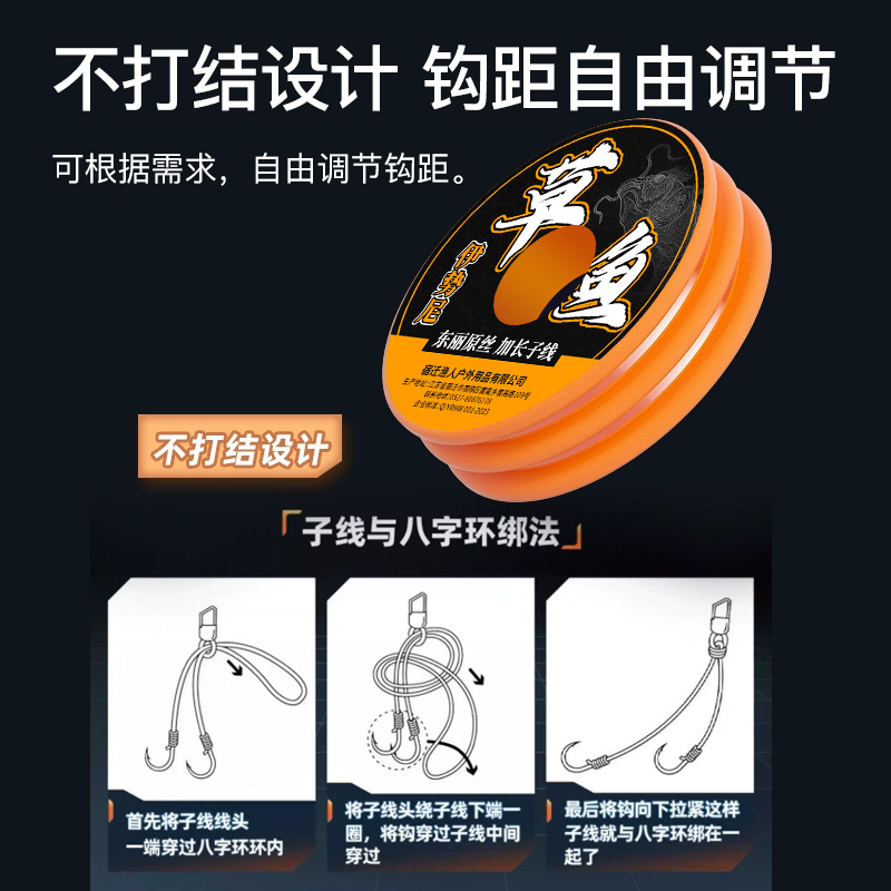 草鱼子线双钩加长行程伊势尼有刺鲢鳙青鱼翘大物绑好成品鱼钩线组