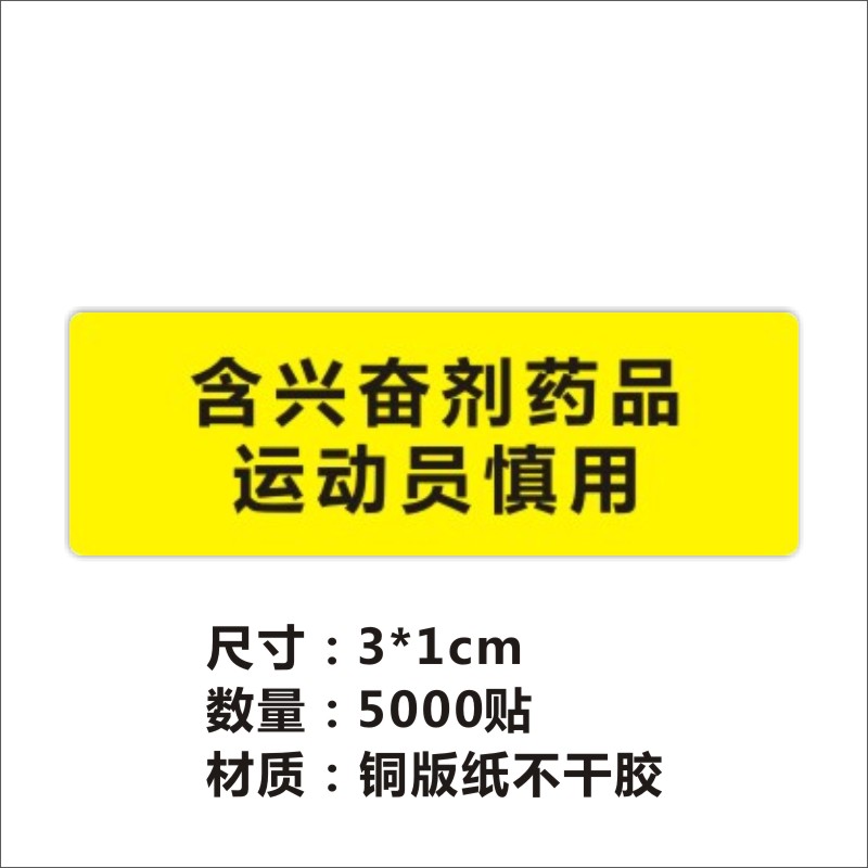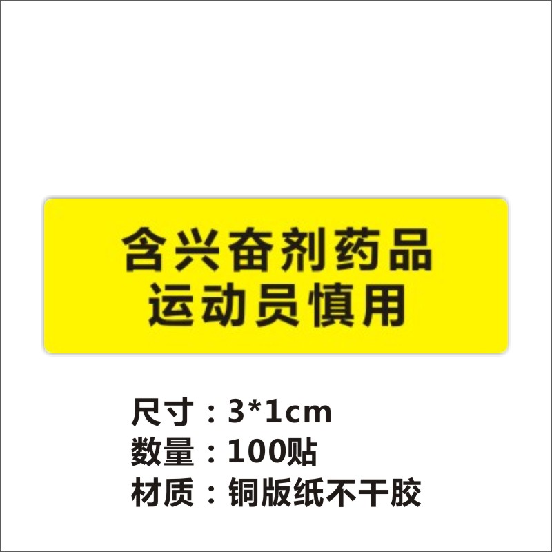 定制打印含兴奋的剂药品运动员慎用不干胶标签标识药房药盒贴F
