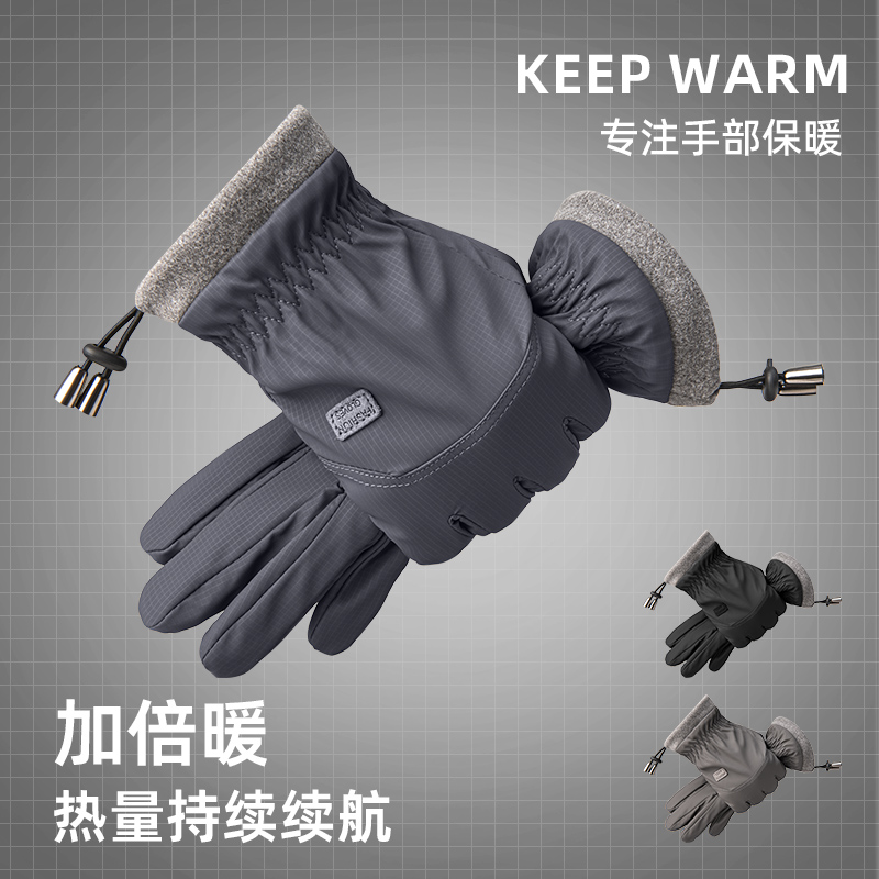 新款冬季保暖手套加绒加厚防寒触屏骑行开车户外运动德绒棉手套