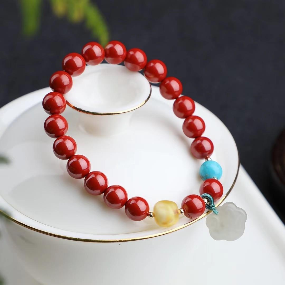 原矿朱砂手串 帝王砂手链 8mm搭配蜜蜡碧玉如意,蜜蜡,