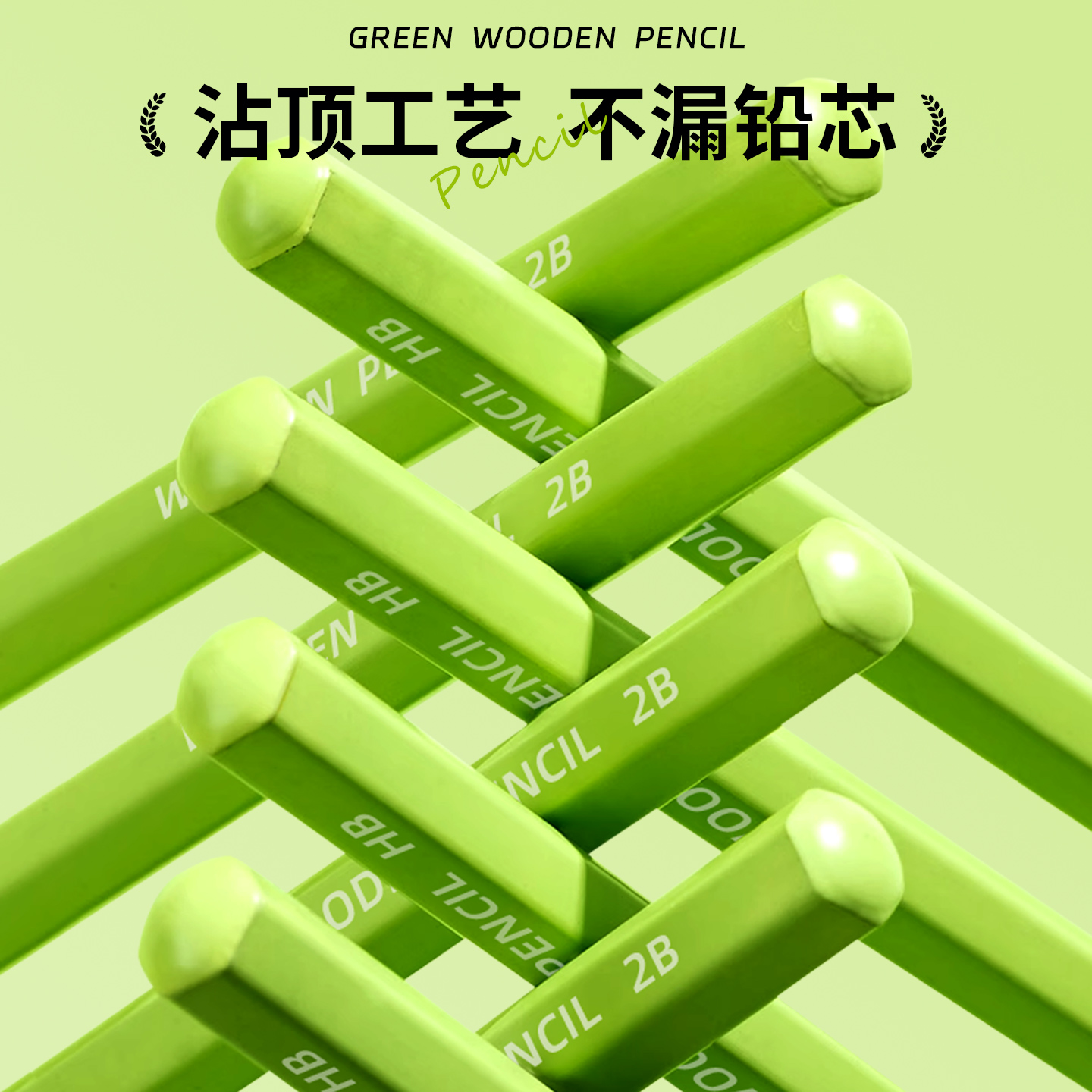 Nusign纽赛小绿杆黑木铅笔hb小学生专用一二年级学习用品正姿高颜值加粗铅芯无铅毒得力书写绘画矫姿素描初学