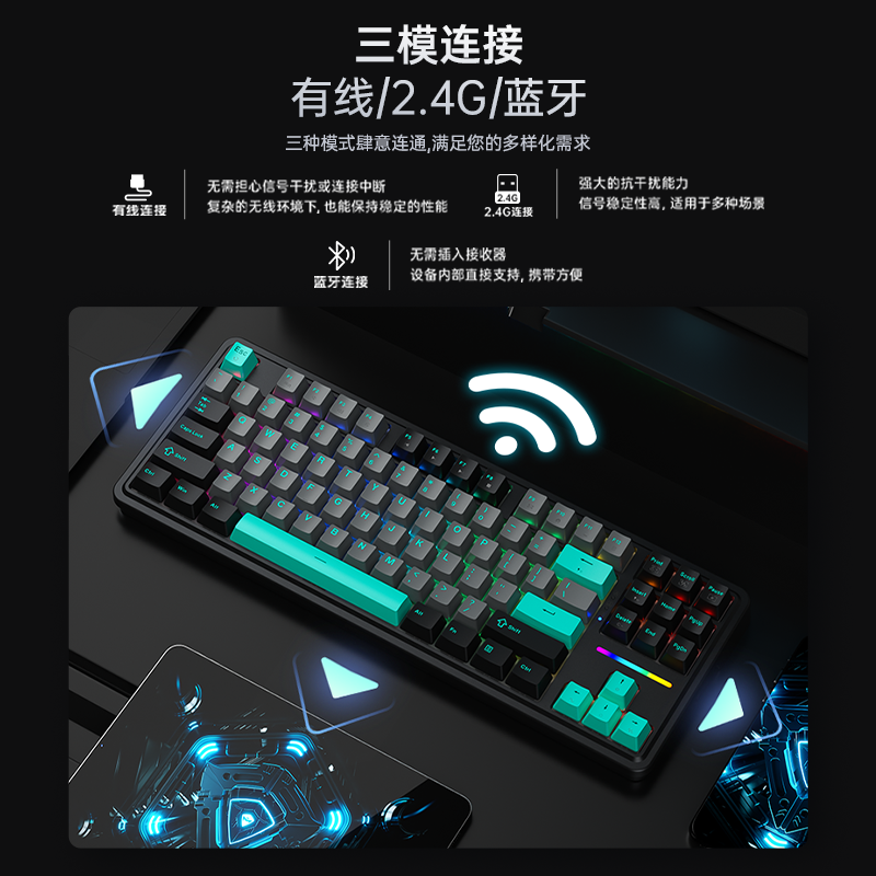 Riccks RS8V2机械键盘无线蓝牙台式电竞游戏电脑办公码字专用87键