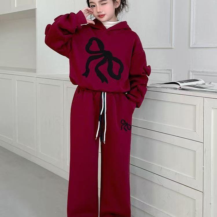 女童冬季卫衣套装韩系时尚加绒连帽上衣休闲运动服阔腿裤两件套