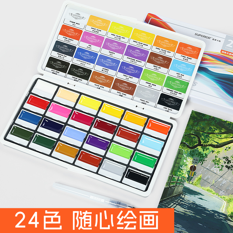 秀普富莱卡勒不透明水彩半干型固体水彩颜料水彩画入门画画工具套装学生美术生专用初学者绘画便携水彩24色