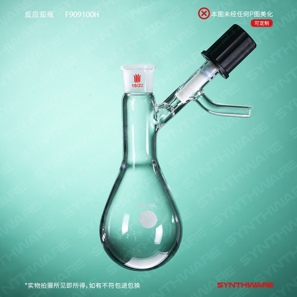 欣维尔反应茄瓶茄形反应瓶玻璃四氟节门高真空阀Schlenk反应瓶史莱克管具支磨口反应瓶F90史莱克瓶schlenk瓶