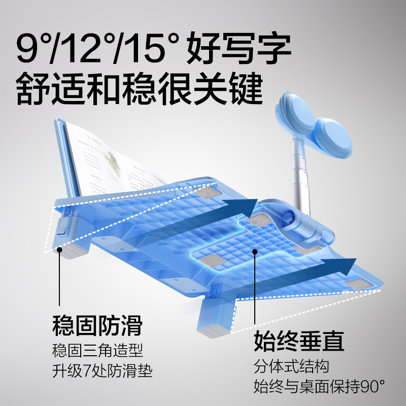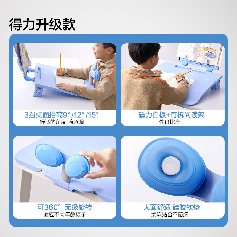 得力黄金12°坐读写调倾斜坐姿写字矫正器学习台儿童写字姿势纠正器阅读架白板小学生写作业不低头