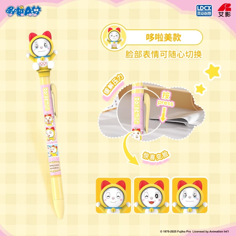 灵动哆啦A梦变脸笔可按动黑色签字笔男女生0.5mm中性笔叮当猫微笑款表情妙想笔多来a梦正版笔高颜值ins风