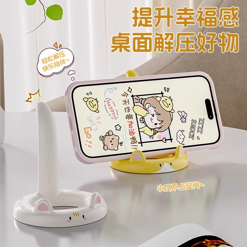 小猫手机支架下饭追剧神器办公室桌面手机支撑架防滑懒人便携追剧