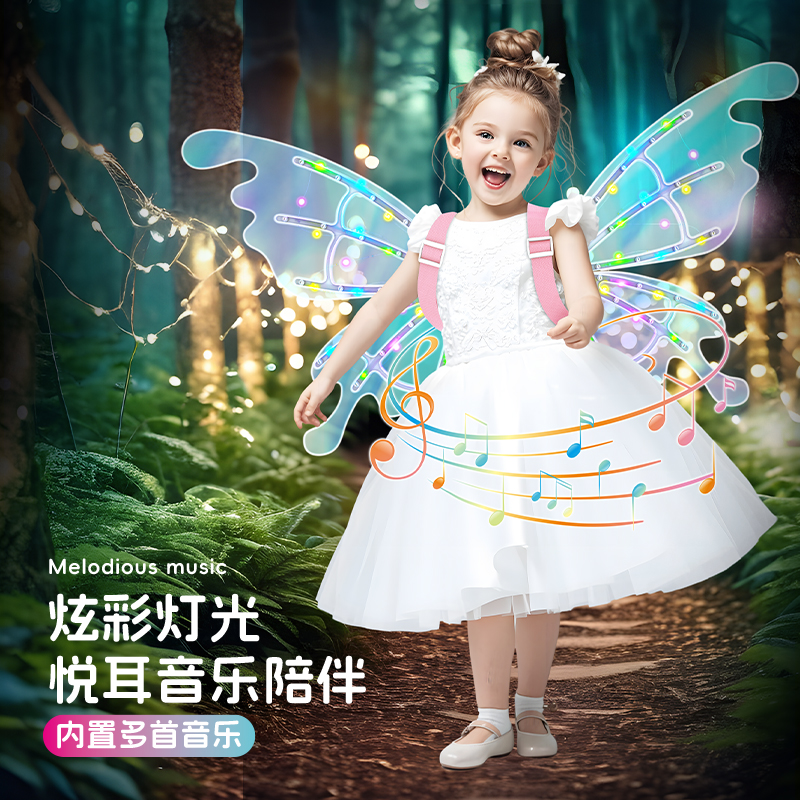 电动发光蝴蝶翅膀儿童玩具小女孩会动的天使背饰仙女女童生日礼物