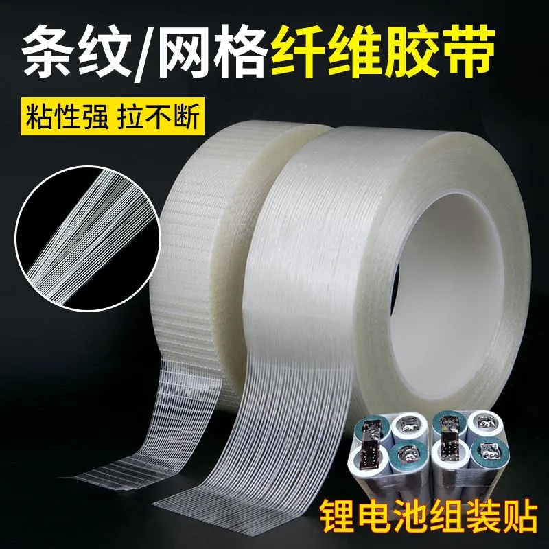 纤维胶带网格玻璃纤维胶带强力高粘加厚大卷单面条纹胶布重物捆扎抗拉耐磨工业锂电池家电冰箱航模模型固定