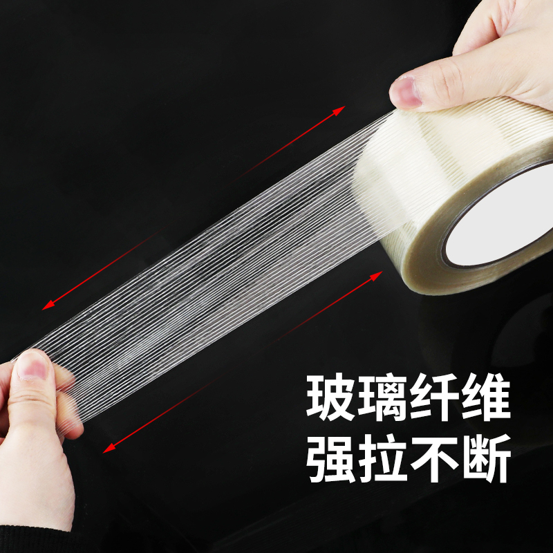 纤维胶带强力条纹高粘度透明抗拉不断耐高温不留痕固定绑重物捆扎篷布木箱打包封箱防水防台风窗户加固胶带