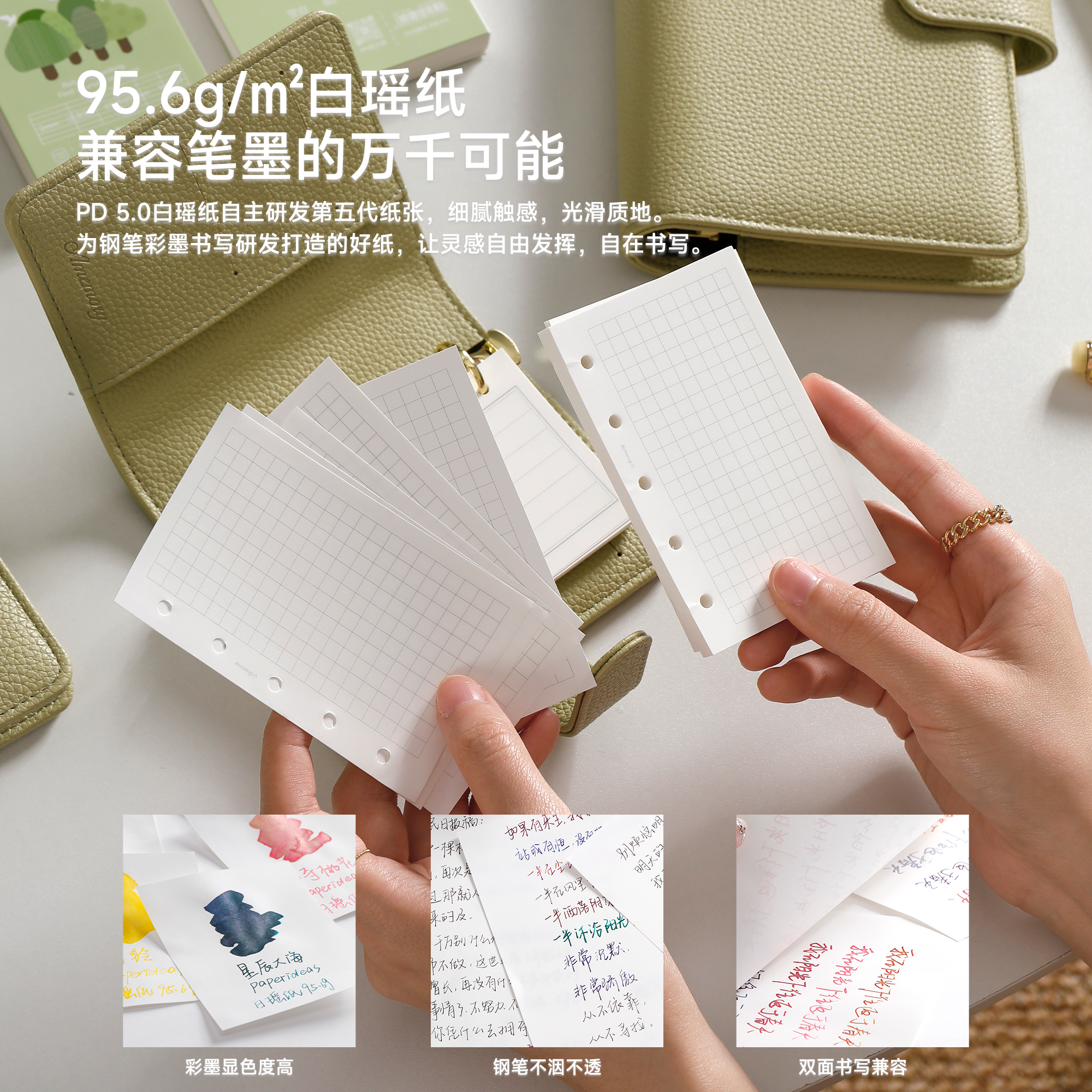 白瑶纸PD5.0版本无酸纸活页内芯钢笔专用手帐内页替芯A5A6A7M5活页替芯标准6孔方格横线手账本内页80张法文格