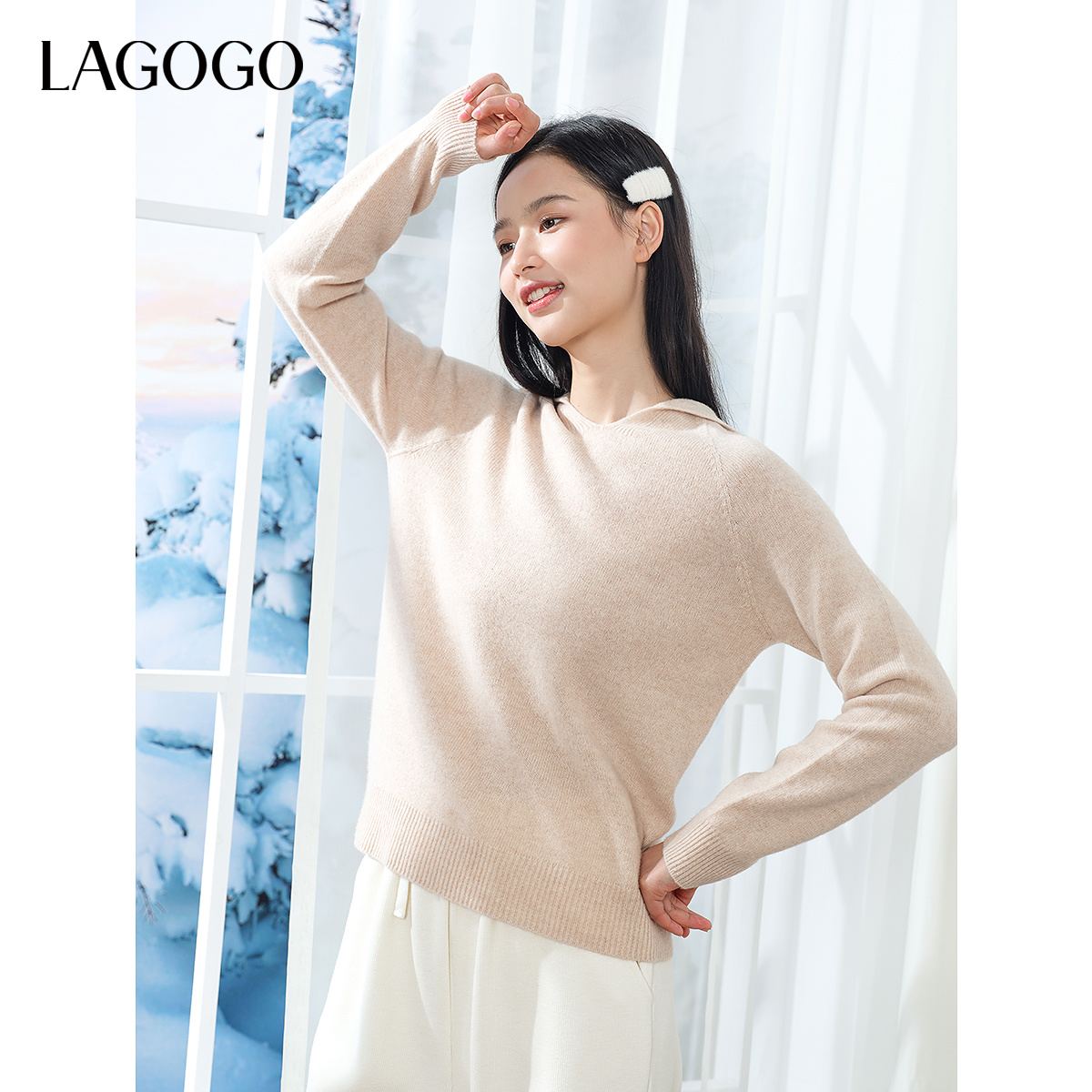 【100绵羊毛无缝一体】LAGOGO温柔连帽针织衫女拉谷谷冬新款