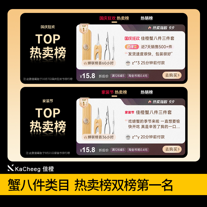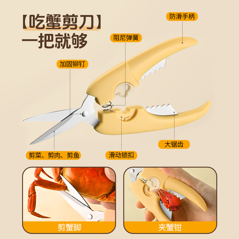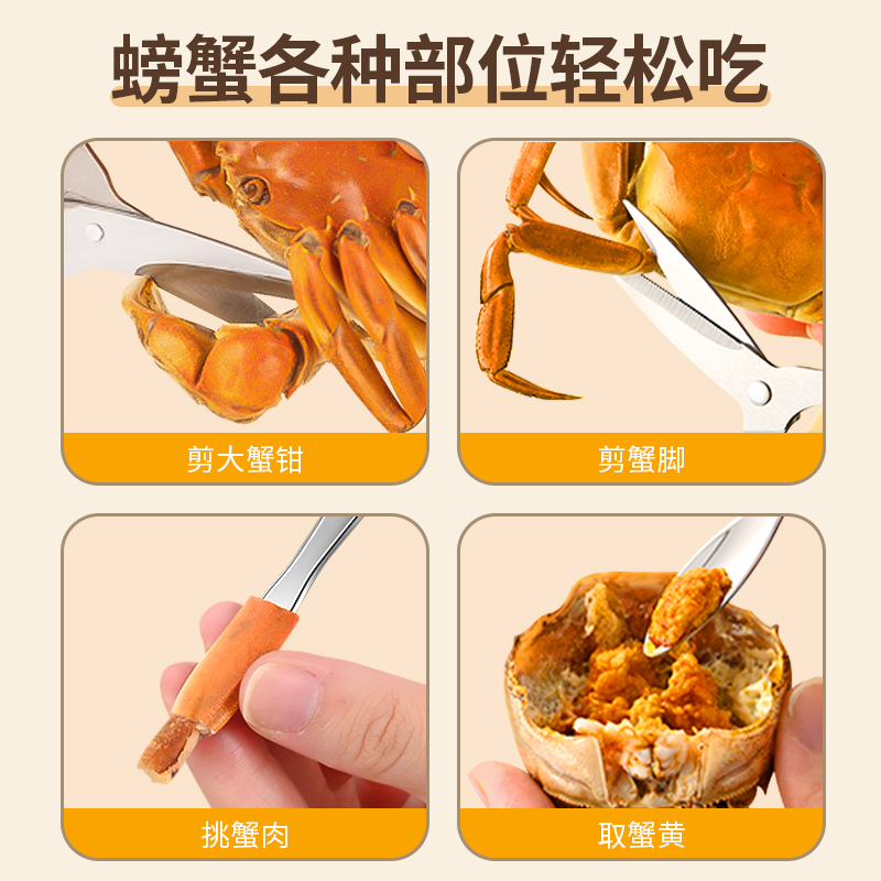 吃蟹工具家用蟹八件螃蟹专用剪刀剥拆大闸蟹神器三件套304钳夹针
