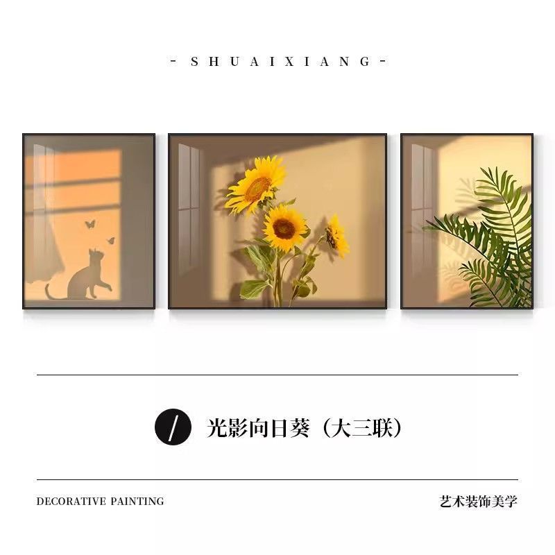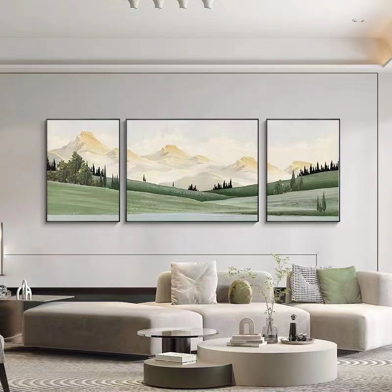 zy绿色沙发背景墙挂画现代简约三联画高档北欧客厅装饰画侘寂风油