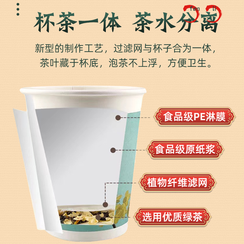 带茶叶的一次性纸杯中茶杯中有茶水分离荞麦茶绿茶红茶展会议定制