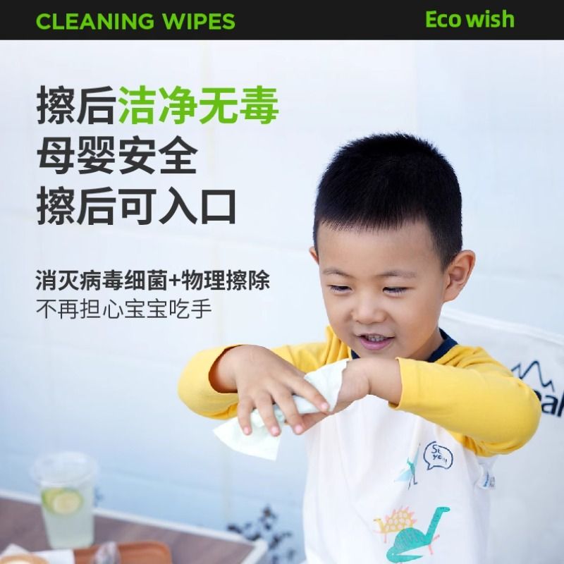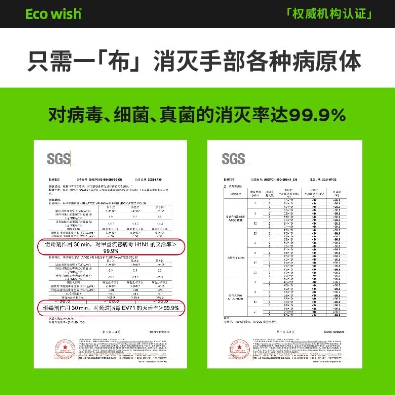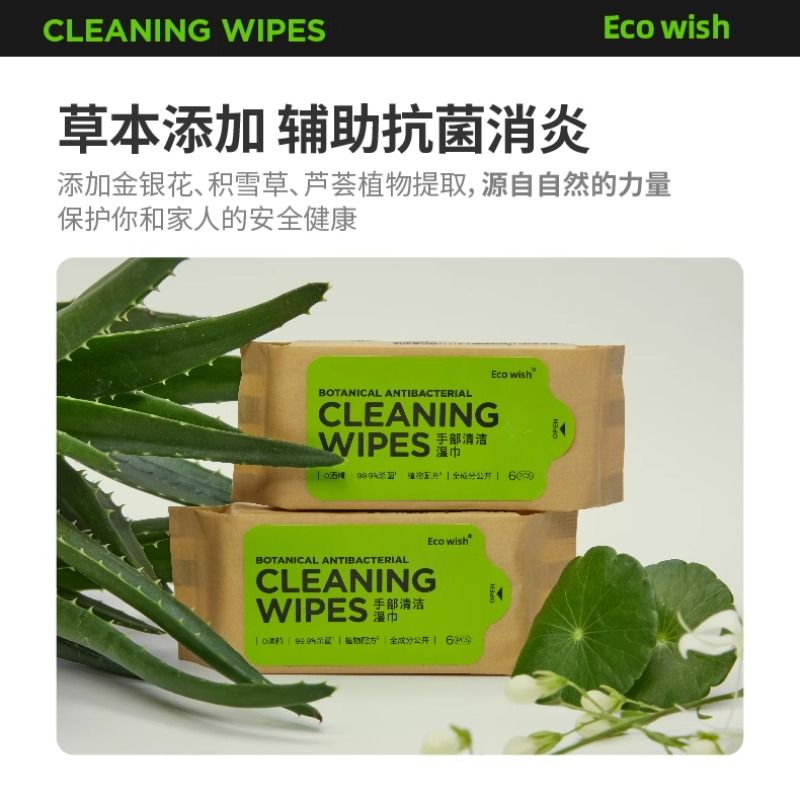 ecowish手部病毒消杀湿巾便携0酒精草本配方绿茶纤维布清洁杀菌