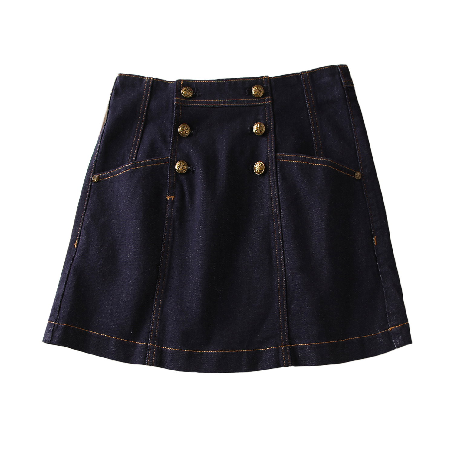 国内单!通勤高腰显瘦A字深蓝色牛仔短裙小个子百搭短裙女半身裙