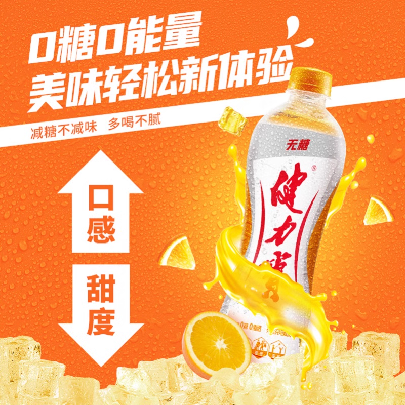健力宝运动碳酸饮料560ml瓶装无糖含电解质橙蜜柠蜜味果味饮料