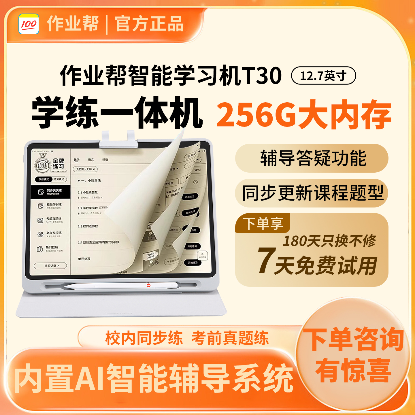 作业帮学习机T50一年级到高中学练机智能平板电脑AI多功能学习机