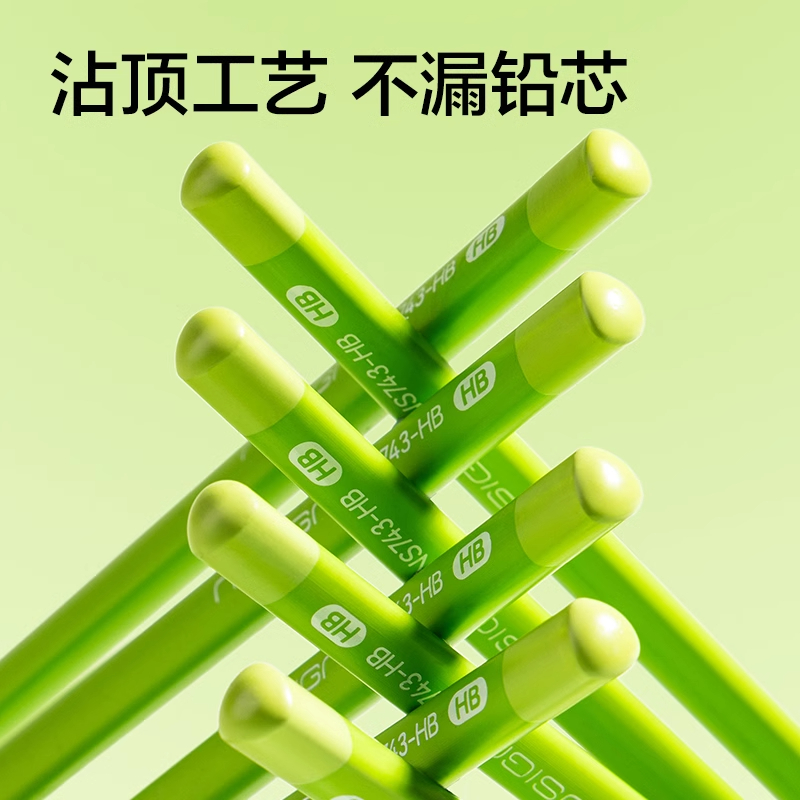 Nusign纽赛小绿杆黑木铅笔hb小学生专用一二年级学习用品正姿高颜值加粗铅芯无铅毒得力书写绘画矫姿素描初学