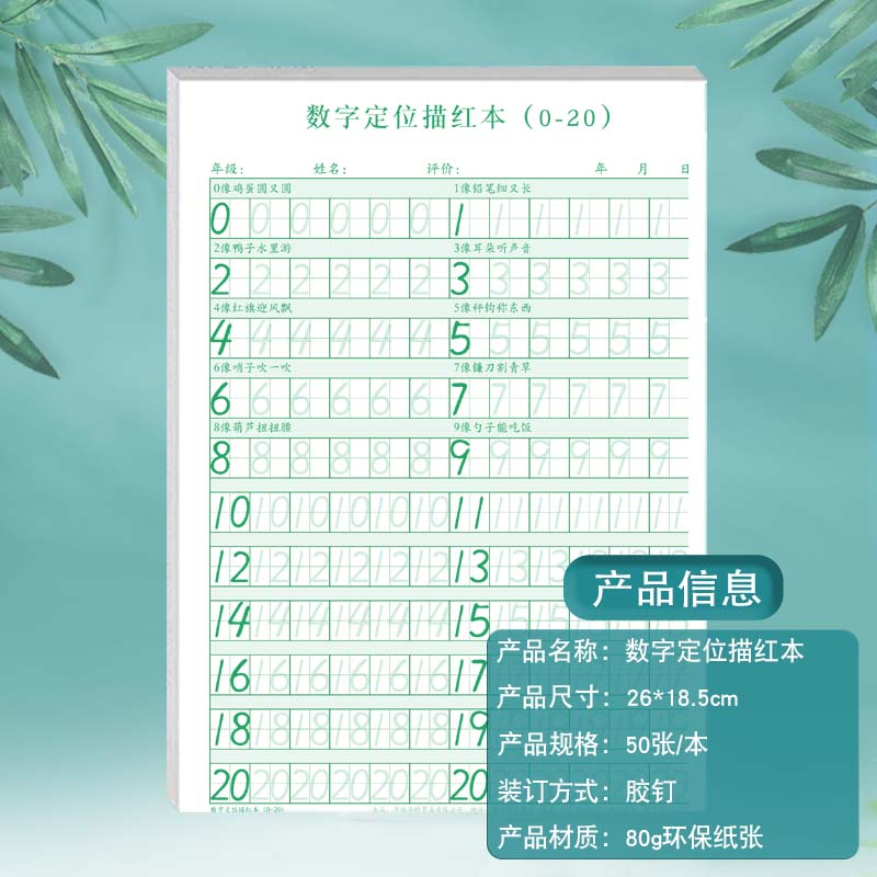 数字定位描红本幼小衔接数学20以内控笔训练数字描红临摹练字字帖幼儿园小学生一年级适用每日一练位置描红纸