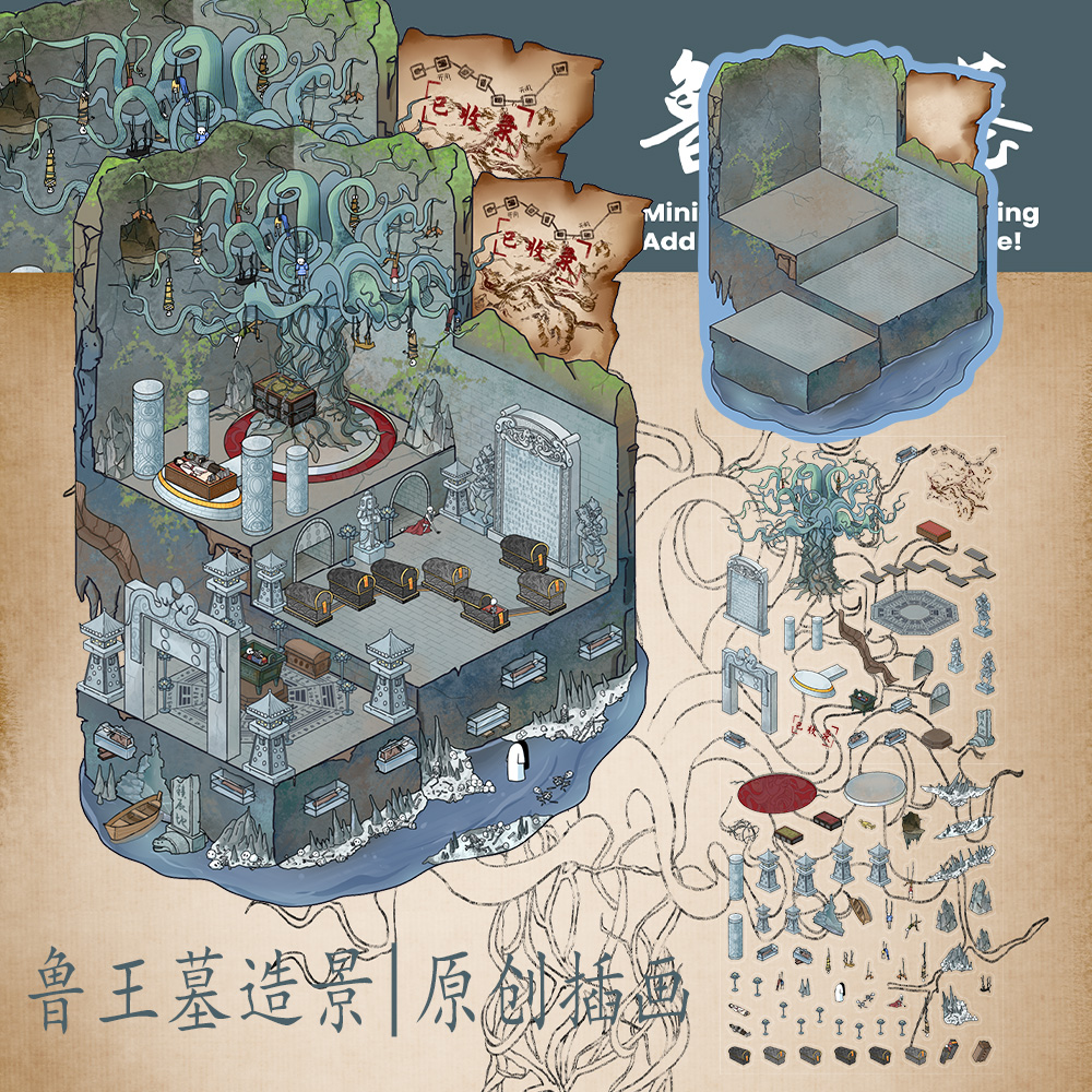 3d立体微缩手账贴纸场景小屋微恐系列鲁王墓卡通diy造景趣味贴纸
