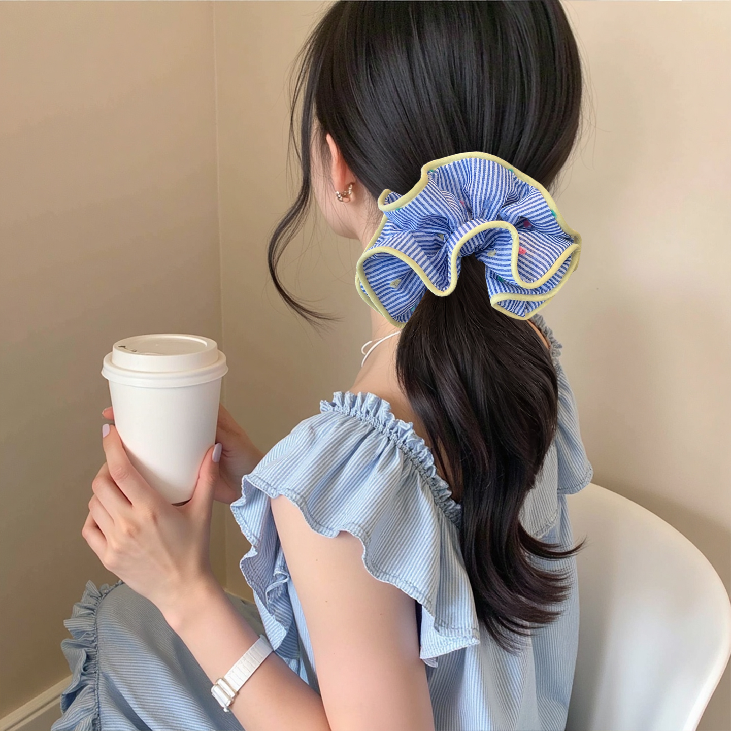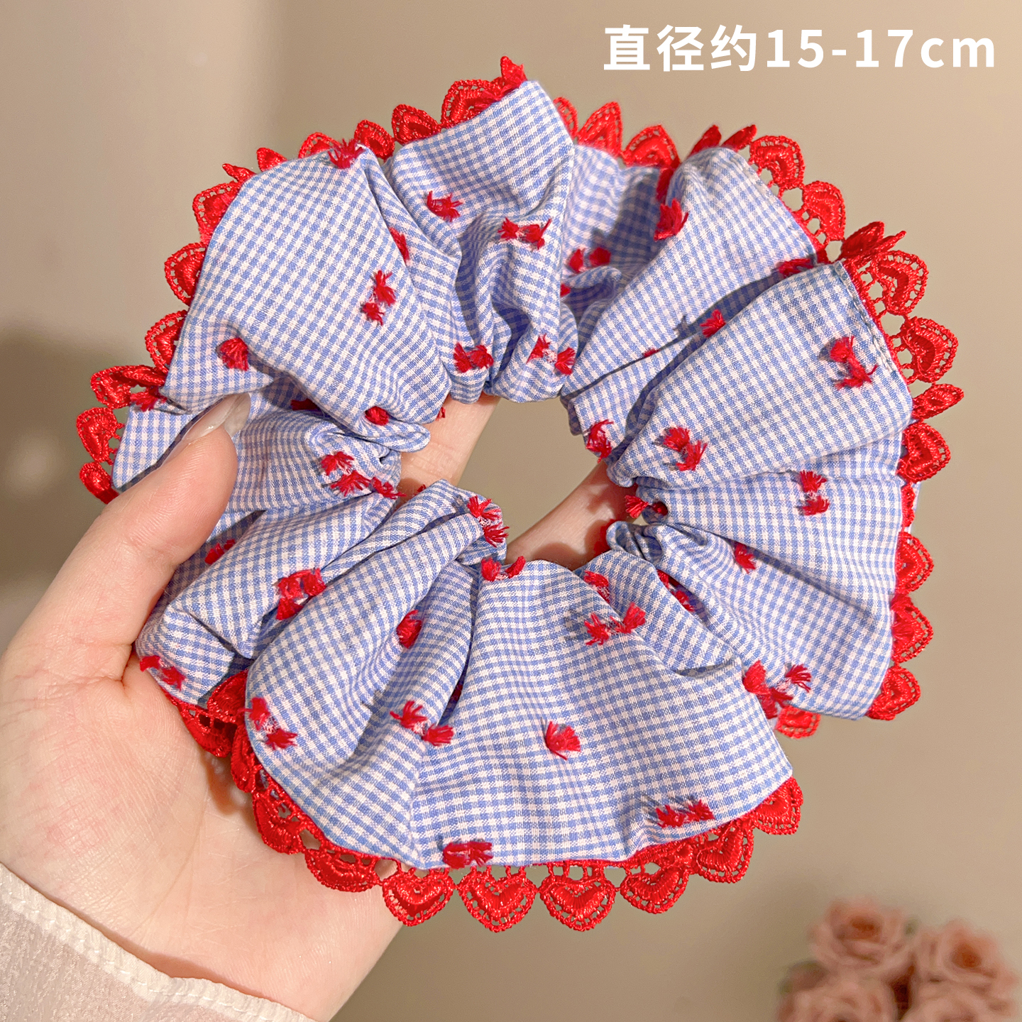 甜美刺绣樱桃大肠发圈少女感百搭扎发马尾头绳丸子头发绳发饰头花
