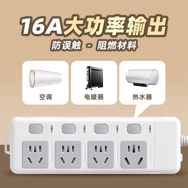 4000W大功率16安插线板10a转16a排插多功能插座大三孔空调用无线
