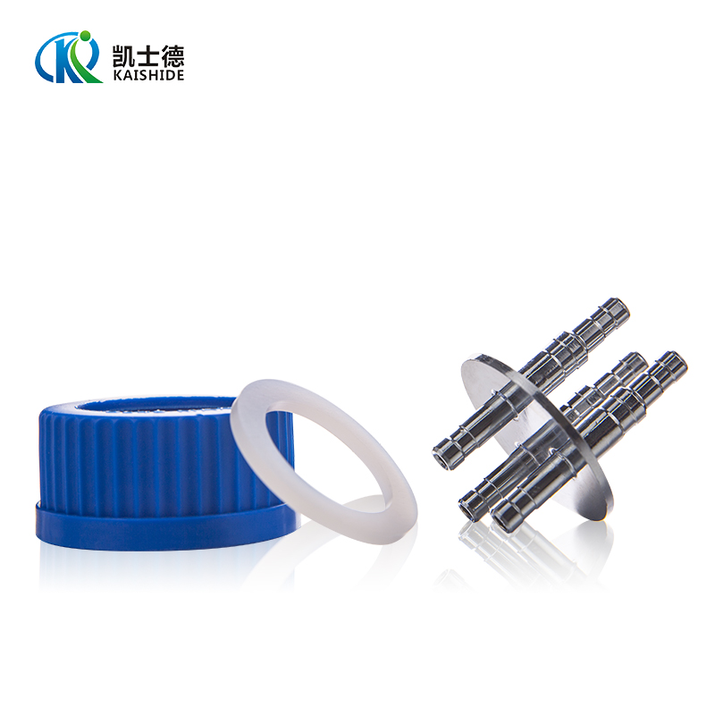 蓝盖试剂瓶加料补料瓶1/2/3/4通不锈钢开孔盖含螺口玻璃瓶子100 250 500 1000ml废液瓶 厌氧瓶 发酵罐
