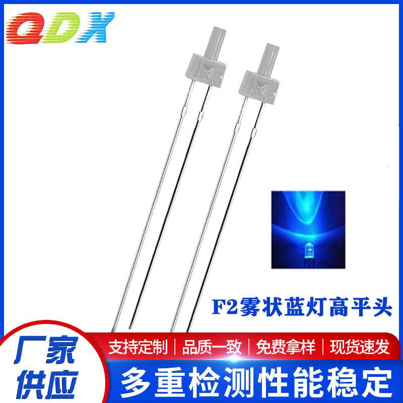F2/2mm雾状蓝灯高平头雾状白发蓝长脚直插发光二极管led灯珠