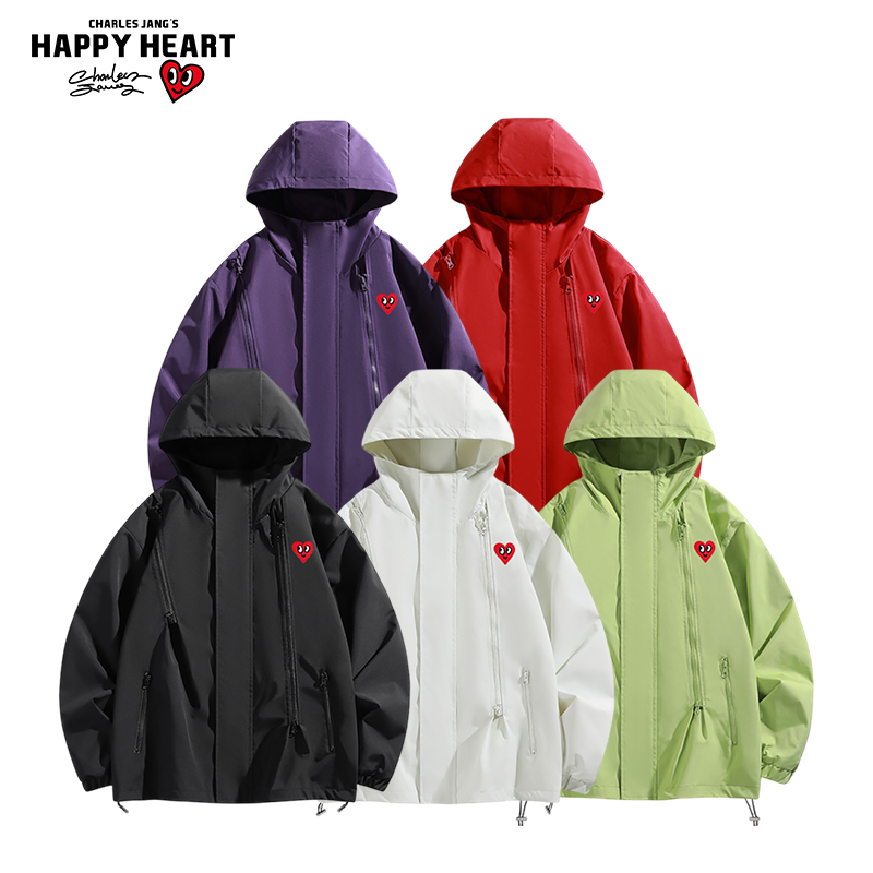 查尔斯桃心美式户外防风防水冲锋衣男春季不规则拉链机能情侣外套