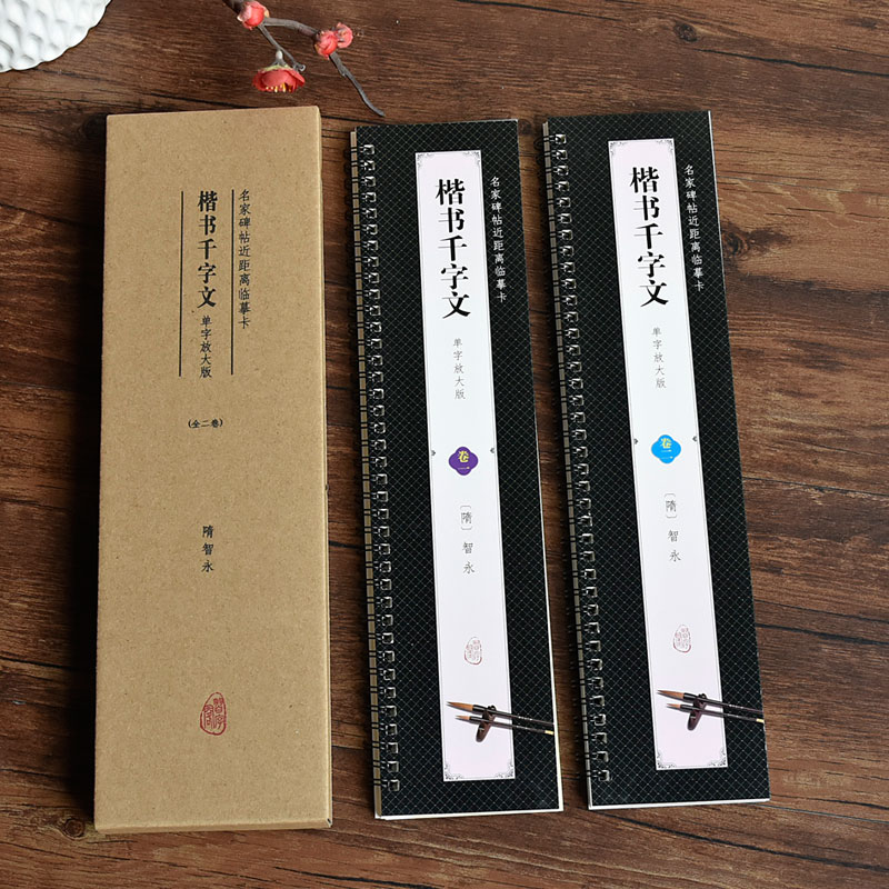 两册隋智永楷书千字文毛笔书法字卡字帖千字简体旁注米字格1000字