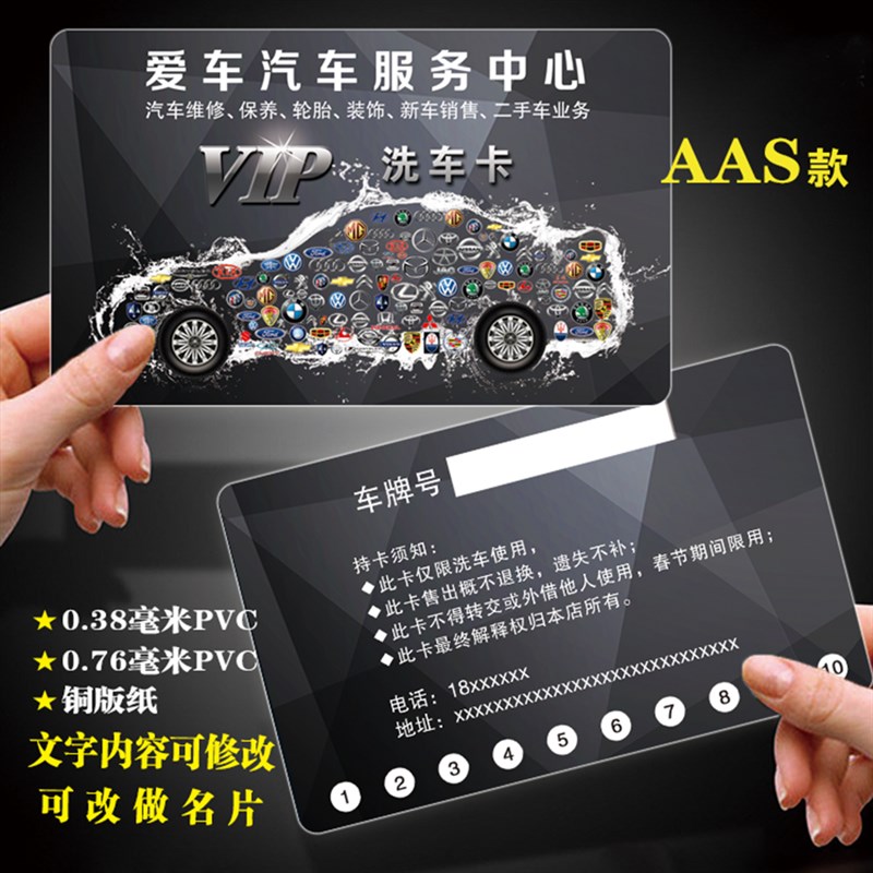 洗车卡定制印刷汽修厂体验卡纸质年卡设计J制作10次打孔透明次数