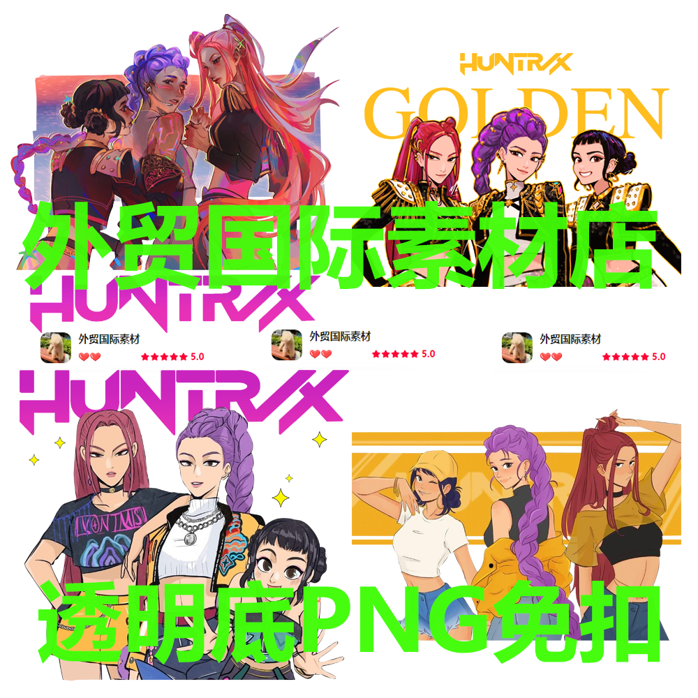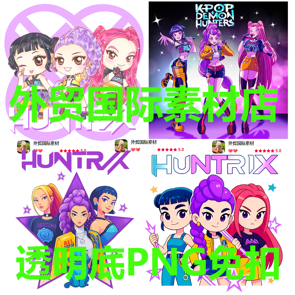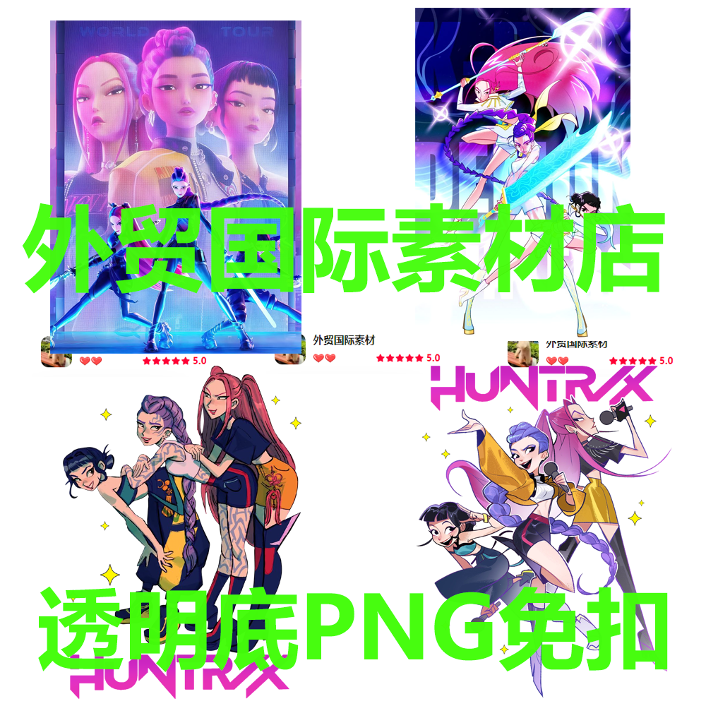 20张PNG透明底K-POP猎魔女团外贸服装印花烫画电子设计图案素材