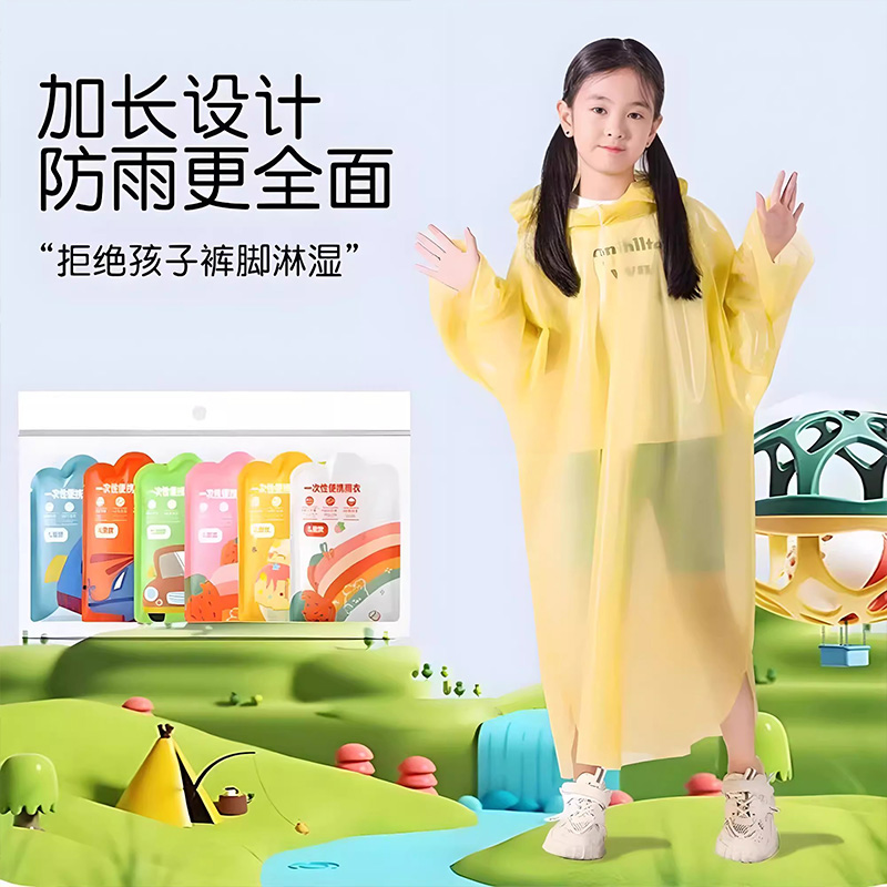儿童一次性雨衣卡片便携防水宝宝成人雨披加厚小学生上学专用旅行